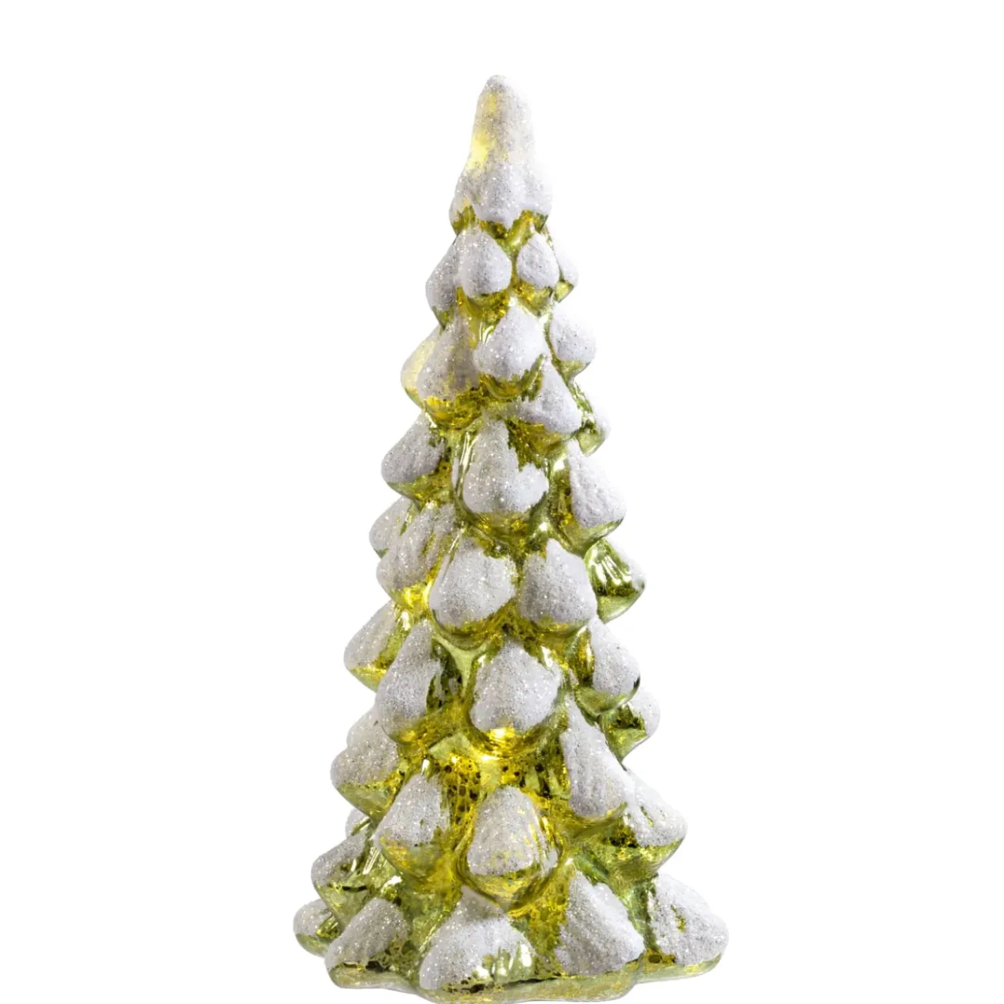 Die Schneebedeckte Tanne Funkelt Wunderschon Im Licht Und Rundet Die Weihnachtsdekoration Perfekt Ab.