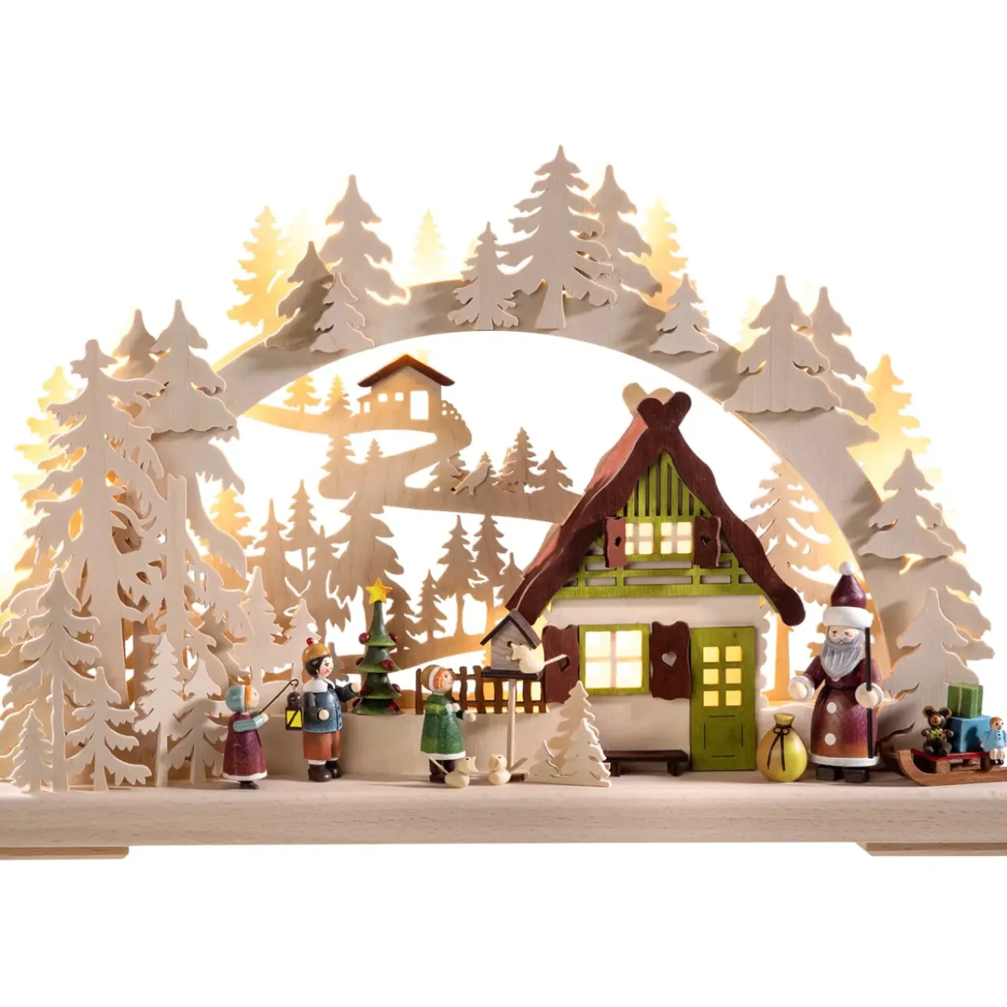 Er Steht Fur Die Hohe Handwerkskunst, Die Die Holzarbeiten Aus Dem Erzgebirge Pragt. Einst Waren Sie Ein Zuverdienst Fur Die Bergleute Im Winter. Heute Sind Schwibbögen Seit Uber 80 Jahren Eine Beliebte Dekoration Fur Die Weihnachtszeit. In Aufwendiger Und Liebevoller Handarbeit, Entstehen Wunderschone Landschaften, Die Durch Die Stimmungsvolle Beleuchtung In Szene Gesetzt Werden. Besonders Wirkungsvoll Erstrahlt Das Licht Des Schwibbögens Auf Dem Fensterbrett. Dort Sorgt Es In Der Kalten Jahreszeit Fur Eine Einladende Atmosphare. Aber Auch Auf Einem Tisch Oder Einem Regal Setzt Ein Schwibbögen Stimmungsvolle Akzente.