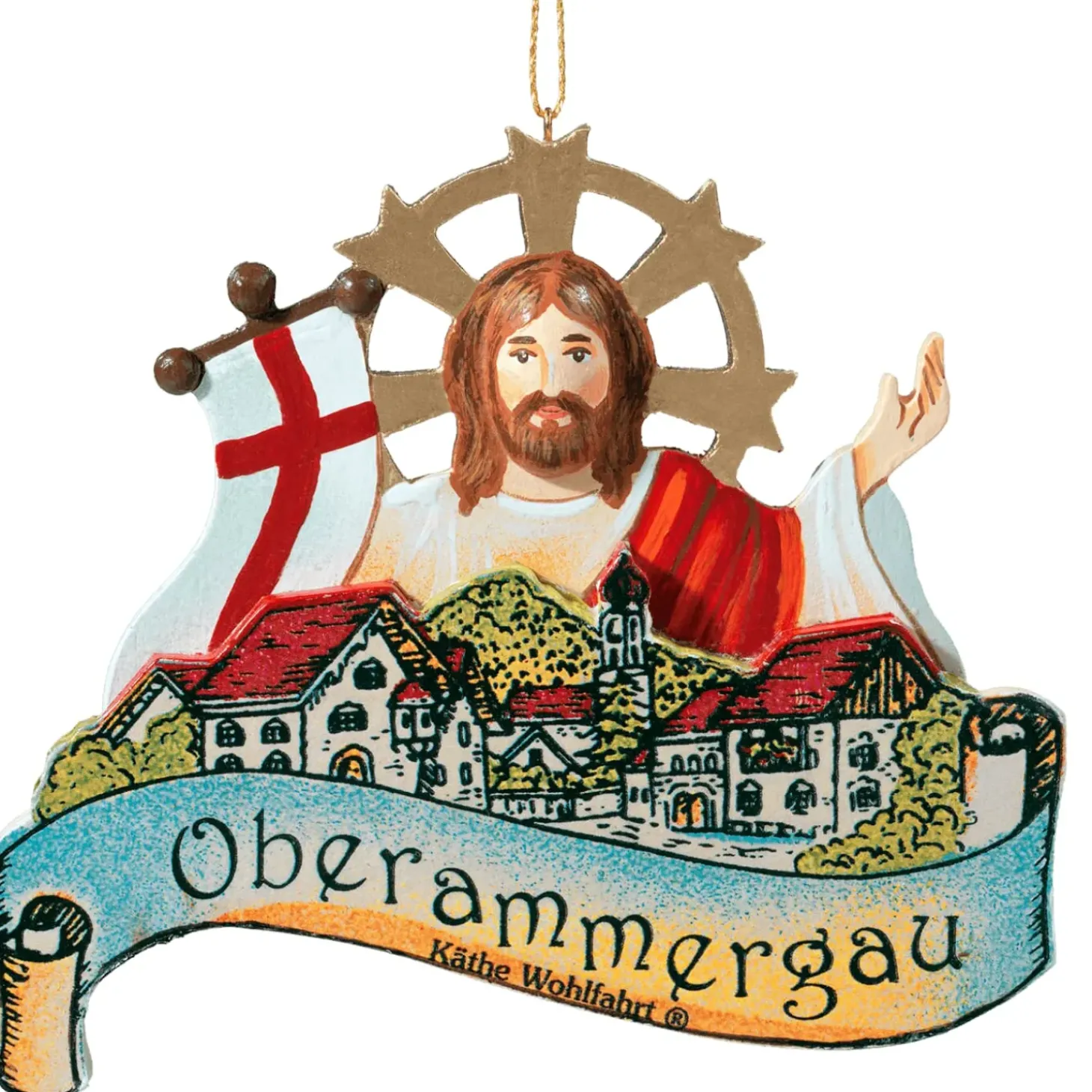 Die Oberammergauer Passionsspiele Sind Die Weltweit Bekanntesten Passionsspiele Und Ziehen Besucher Aus Der Ganzen Welt An. In Den Auffuhrungen Stellen Die Dorfbewohner Oberammergaus Die Letzten Funf Tage Im Leben Jesu Nach. Die Prachtige Jesusfigur Hebt Hier Schutzend Seine Hand Uber Oberammergau In Den Ammergauer Alpen. Das Passionstheater, Die Pilatushaus Oder Die Kirche Sind Weitere Sehenswurdigkeiten Des Kleinen Bayerischen Stadtchens.