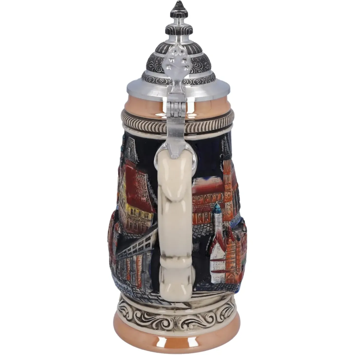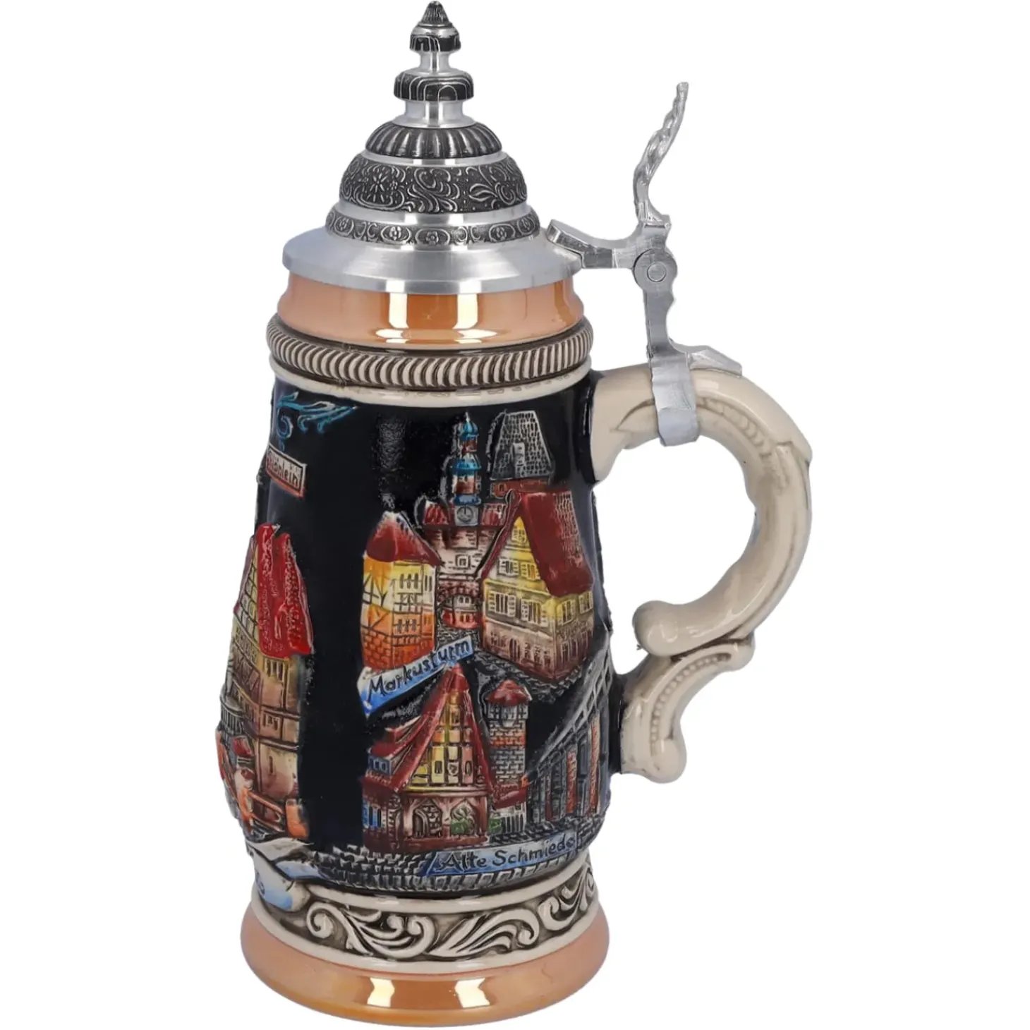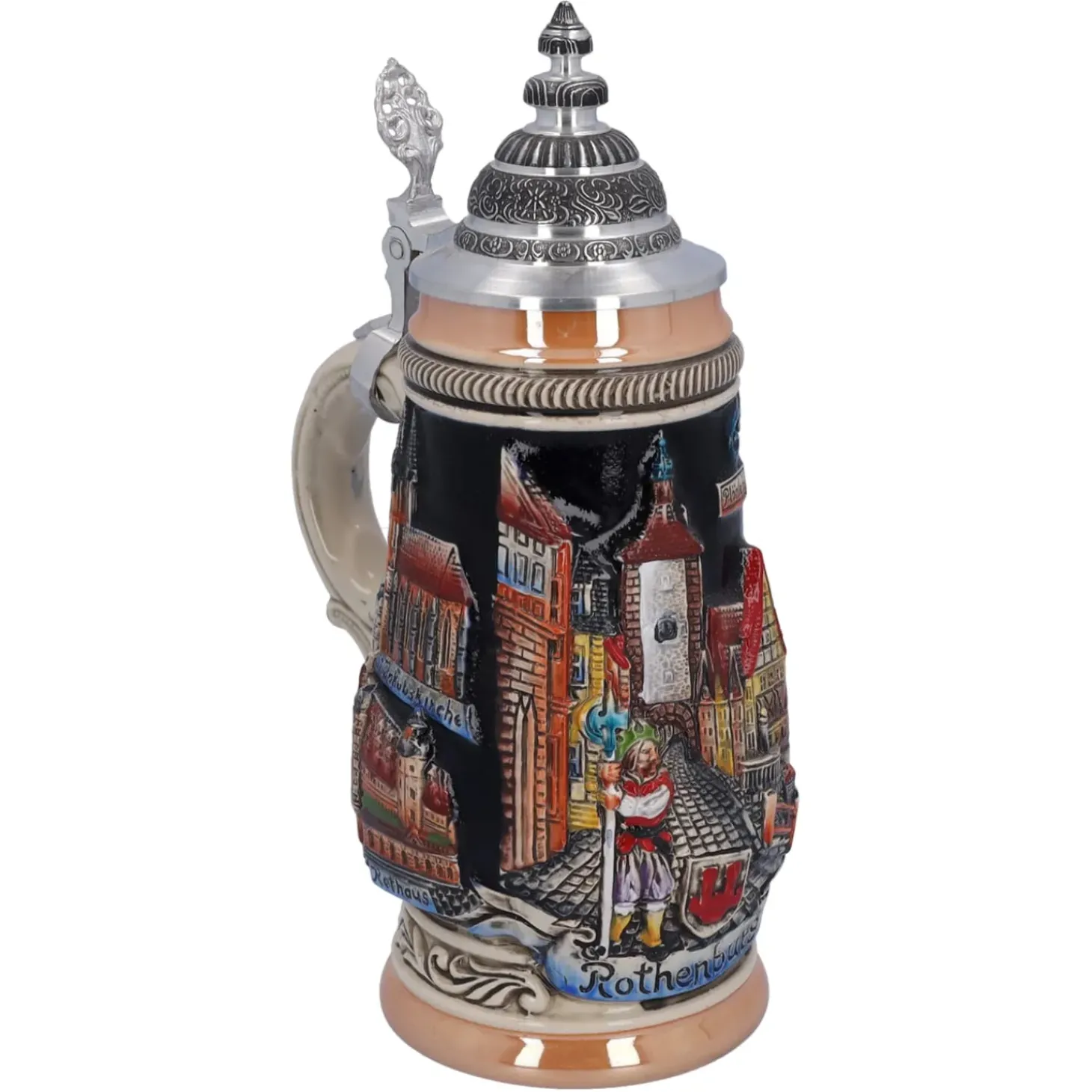 Bierkrug Mit Zinndeckel "Rothenburg", Schwarz, 0,25L