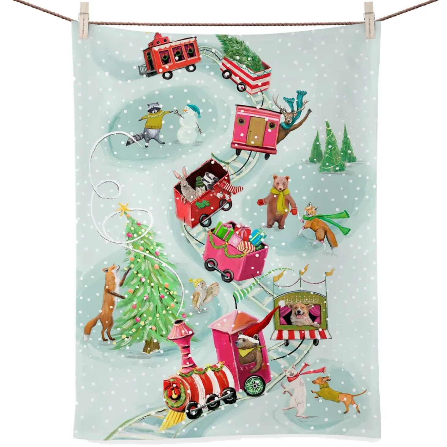 Geschirrtuch Winterzug Mit Tieren
