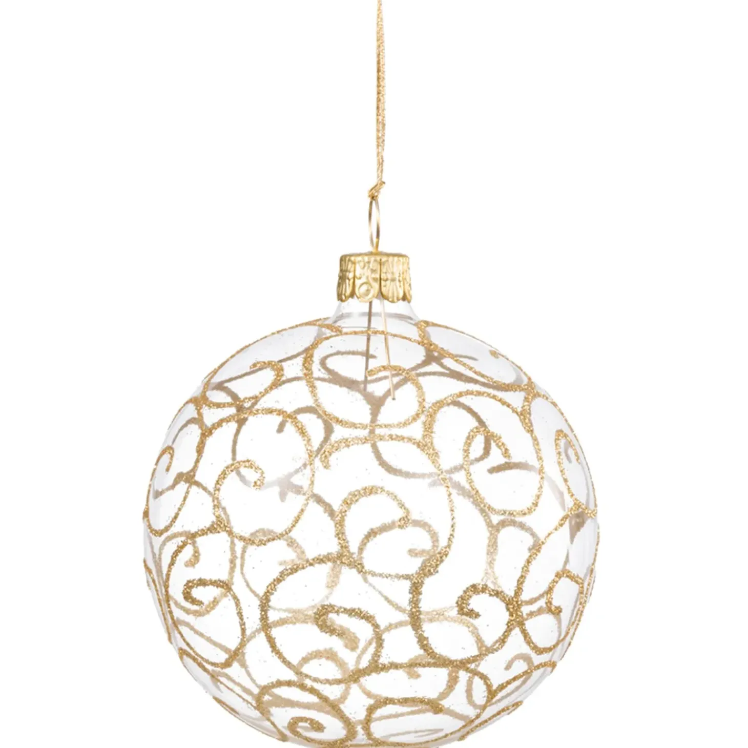 Glaskugel Klar Mit Goldschnorkeln, 8 Cm