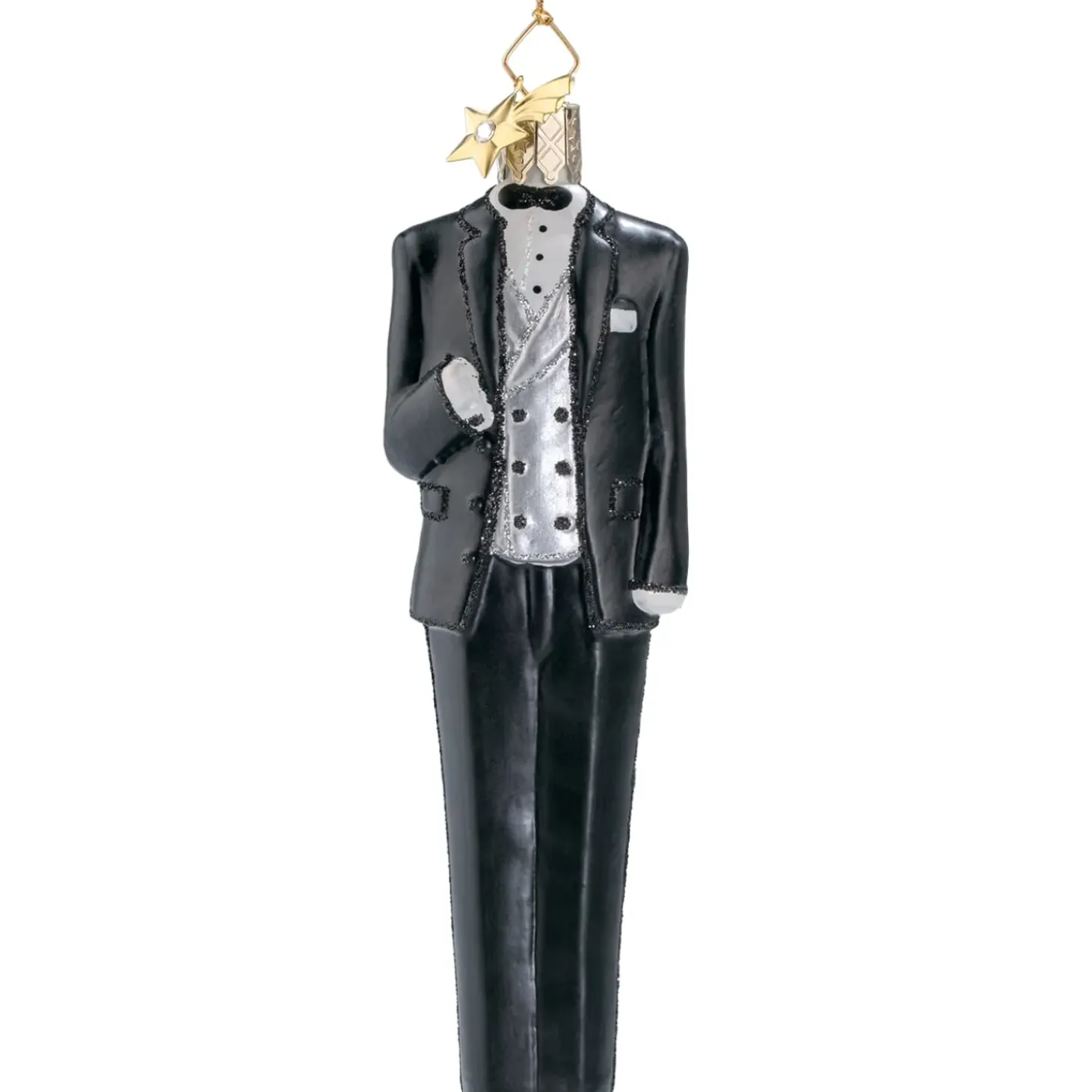 Es Ist Einer Der Schonsten Tage Im Leben: Der Hochzeitstag. Der Tag An Dem Man Sich Gegenseitig Das Jawort Gibt Soll Daher In Bester Erinnerung Bleiben. Am Besten Das Ganze Jahr Uber. Warum Also Nicht Auch An Weihnachten Als Schmuck Am Christbaum? Das Schwarze Anzug Mit Weisem Hemd Und Fliege Gibt Eine Gute Figur Am Baum Ab Und Erganzt Sich Hervorragend Mit Den Festlichen Glaskugeln.