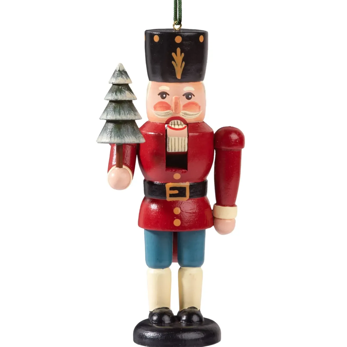 Der Kleine Nussknacker Macht Stehend Oder Als Baumbehang Eine Gute Figur. Der Nussknacker-Soldat Tragt Uniform Und Halt Ein Tannenbaumchen In Seiner Hand. Die Detailreiche Gestaltung Verleiht Dem Miniknackl Charakter Und Ist Eine Bereicherung Fur Jede Weihnachtsdekoration Und Einfach Lustig Anzuschauen.