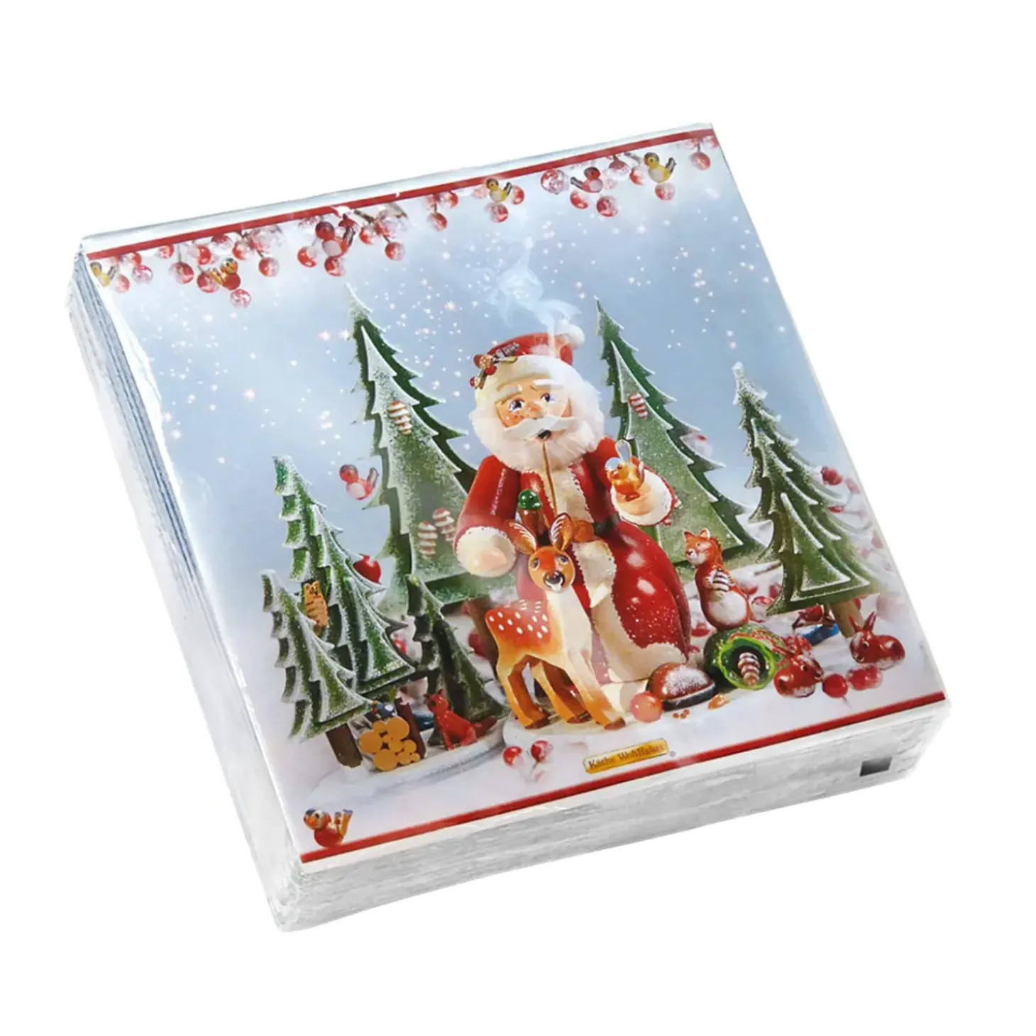 Papierservietten Mit Dem Motiv Des Holzknoddls „Tierweihnacht“ Aus Der Rothenburger Weihnachtswerkstatt.